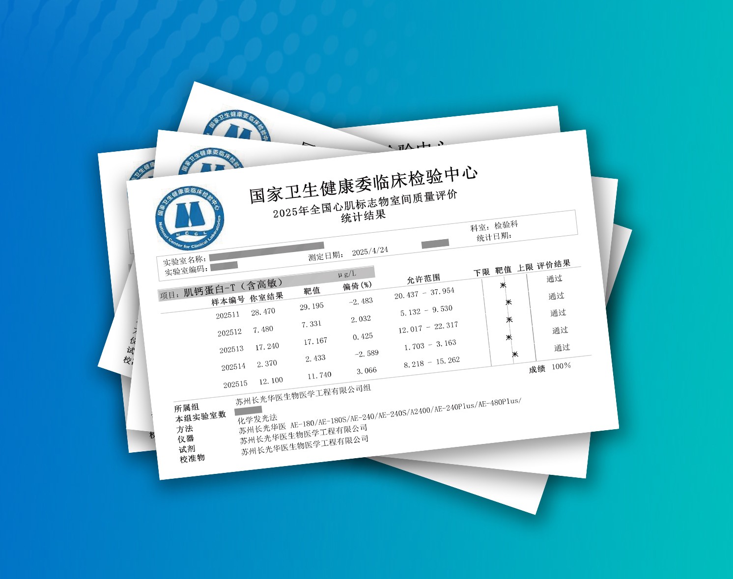近日,國家衛生健康委臨床檢驗中心(NCCL)公布了2025年全國心肌標志物室間質量評價統計結果,截至目前,蘇州長光華醫生物醫學工程有限公司化學發光平臺心肌炎癥標志物cTnI、CK-MB、MYO、PCT、乙肝5項、丙肝、艾滋、胃蛋白酶原I和II以及肝纖4項在此次評價中滿分通過!